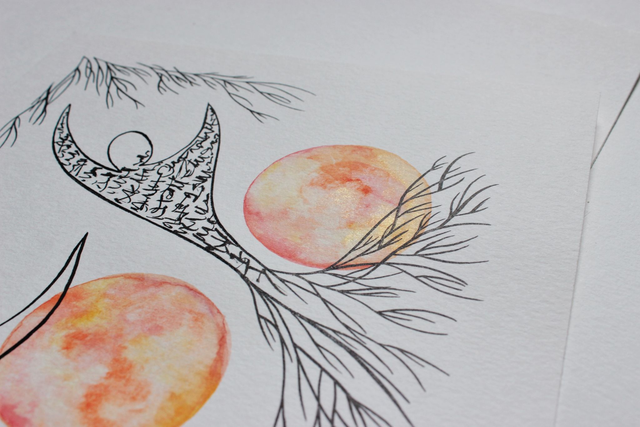 L'encre de Chine viens souligner ces sphères colorées qui apportent une dimension plus spirituelle à l'esthétique.