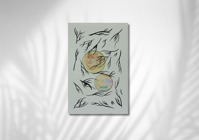 Réalisée intuitivement, elle résonnera avec vos émotions. L'encre vient souligner ces sphères colorées qui apportent une dimension plus spirituelle que décorative. Pour la valorisée, un cadre sous verre ou avec un passe-partout sont recommandés. Posée sur un bureau ou affichée en pêle-mêle elle vous apportera de l'harmonie dans votre espace. Offrez-vous un moment de contemplation et laissez place à l'imagination!
