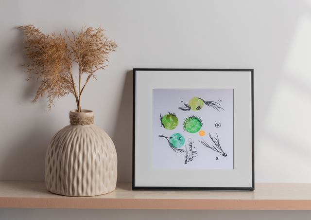 Un cadre avec un passe-partout de 30x30cm valorisera cette illustration. Ce format carré standard vous permettra de multiples possibilités d'agencement - seul ou en pêle-mêle.